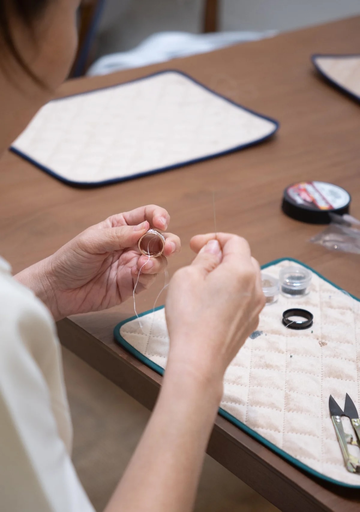 The Eden + Elie Ring Beading Workshop is an intimate session that invites 8 guests to experience the art of bead weaving firsthand, guided by expert artisans in a space designed to reflect the warmth of home.
