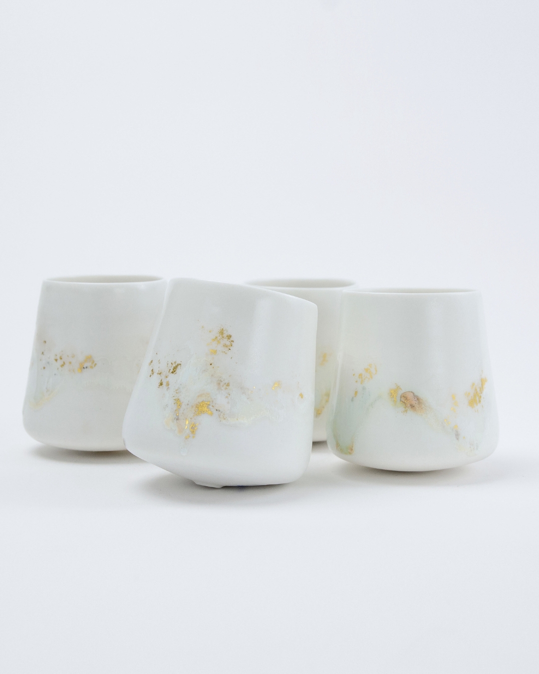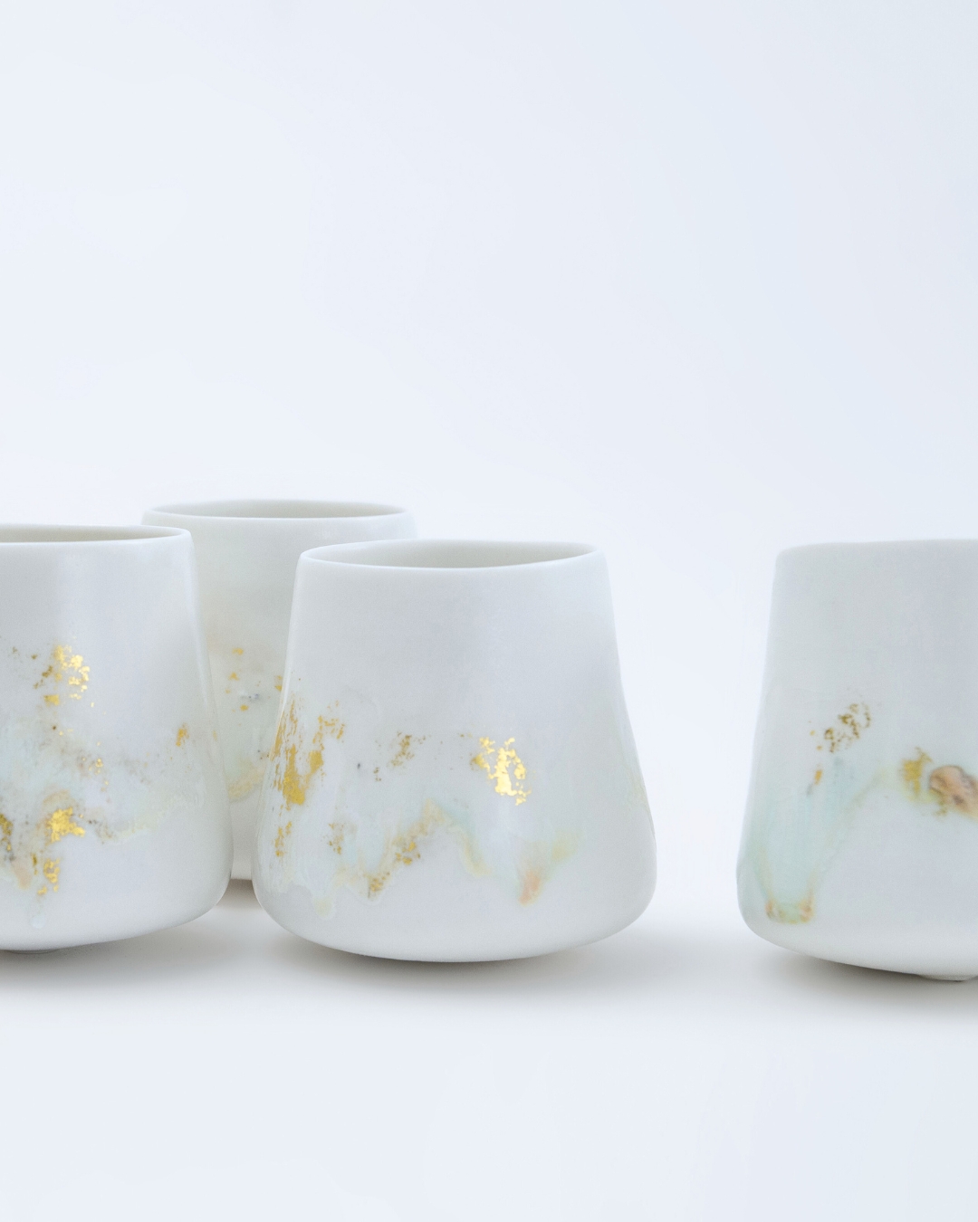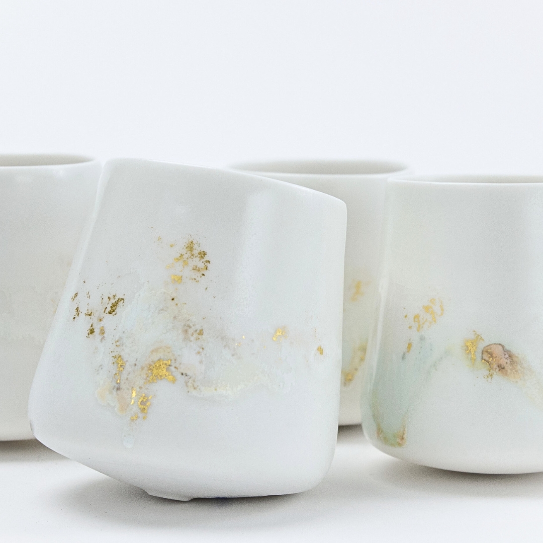 In creating this series, Agnes carefully incorporated a layer of 24k gold gilding onto the exterior of the cups. This choice was made to highlight not only the preciousness of the objects but also the value of the act of giving — echoing the generosity and collective energy that a charity auction embodies. The gold surface interacts with light much like stage design does, imbuing the work with a sense of presence and illumination.